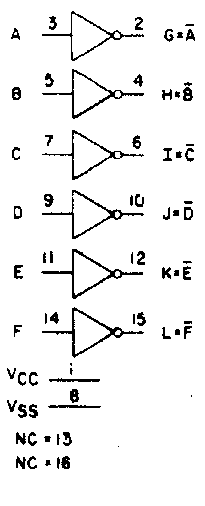 | pinconfiguration of the 4049 logic IC | |