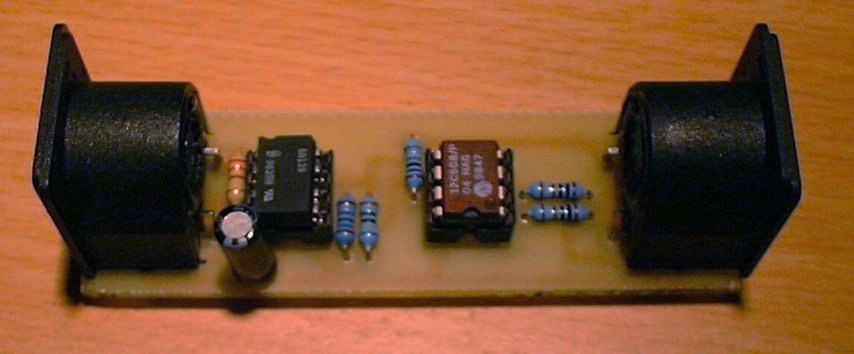 To provide power for the convertor a MIDI device must be connected to the MIDI IN socket, even if the device is being used for DIN to MIDI conversion. The circuit can be modified to use an external 5 volt supply - see notes on schematic, or you can make up a little adapter for a regulated 5v supply to connect it directly to the appropriate pins on the MIDI Input socket (pin 2 = 0v, pin 4 = 5v).