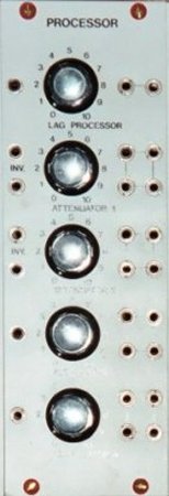 Description: The Processor module allows an audio or control voltage output from another module simultaneously to control up to four other modules without any loading problems. Four channels of this type are available with individual attenuation of their output levels. Two of these channels also include a signal phase inverter and a separate 'lag processor' is included.