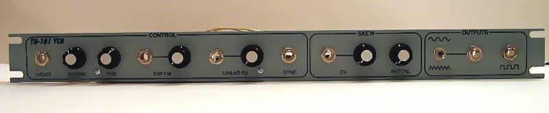 One may wonder at that last feature - what is the skew function? Skew provides a method to morph from either a triangle wave to a ramp wave or a sine wave to a 'rampoid' output. Here's the cool thing - it not only morphs the wave shape, but the ramp or rampoid output is at exactly *twice* the frequency of the triangle or sine wave. The effect is an awesome function - putting it under voltage control is quite an experience (it can sound quite filter-like even without a filter). Even at static settings, it can be somewhat like dialing in a sub-oscillator, only, as with most sub-oscillators, the lower frequency is not a pulse wave, but rather a triangle or a sine wave. It really gives some 'bottom' to the sound.