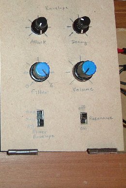 | Filter/Amplifier Module : Attack, decay, filter cutoff frequency, master volume, filter voltage | |