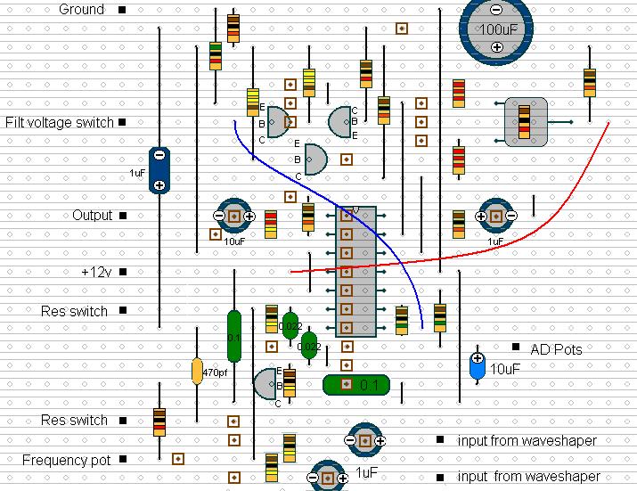 | Veroboard layout for the waveshaper | |
