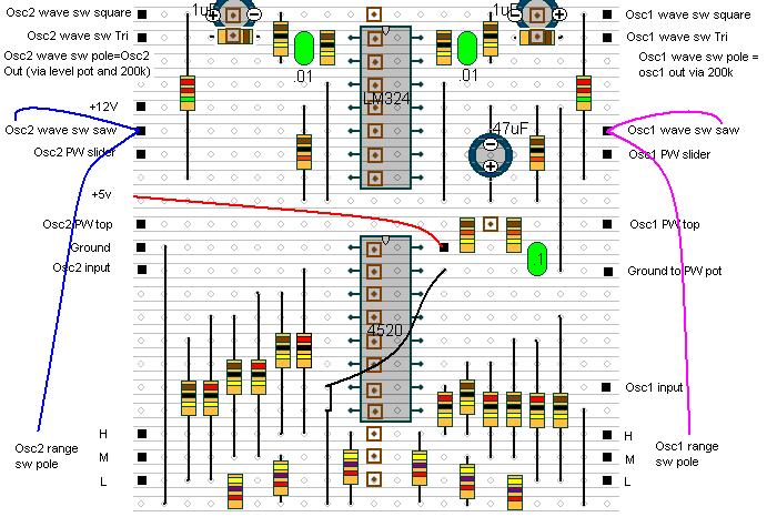 | Oscillator Module : Oscillator 1, range H/M/L, pulse width, waveform (ramp,square,triangle), tu | |