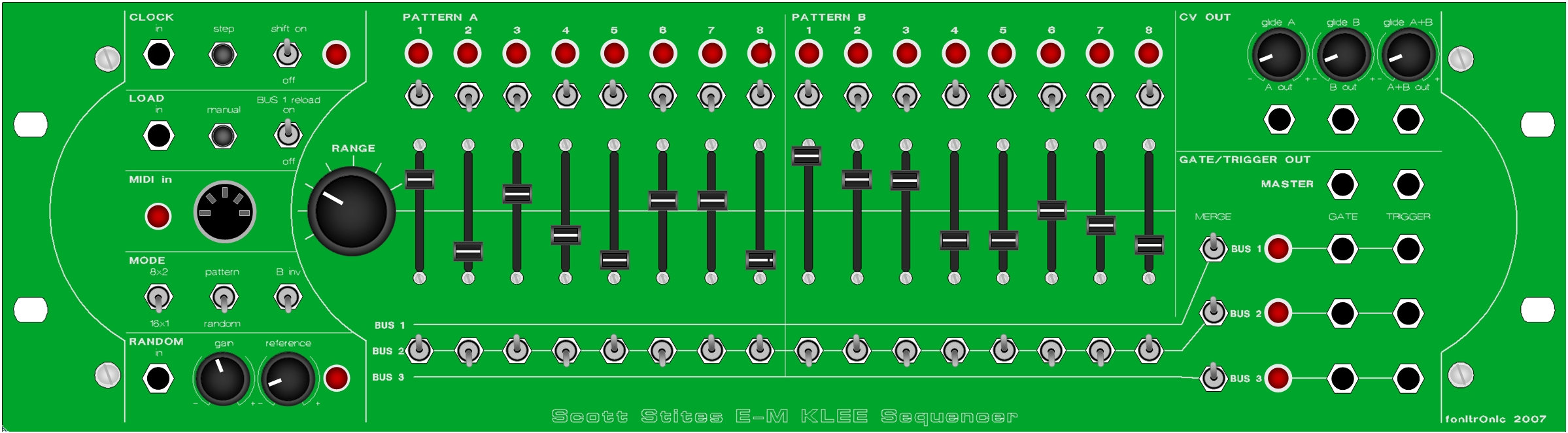 Description: Scott Stites, and the Electro-music.com forum community has made a new very versatile analog sequencer. It is similar to a normal stepsequencer in many ways, but can do so much more... Well to fully understand I suggest reading the manual. Or even better, build one and find out hands on :)