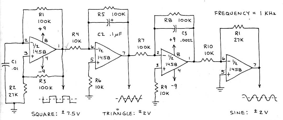 Description: This design is for a fixed 1kHz function generator. It can probably be modified for variable frequency.