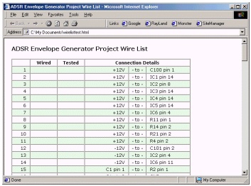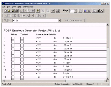 Once your schematic is complete a wiring net list is just a mouse click away. The wire list always shows the minimum number of necessary connections.